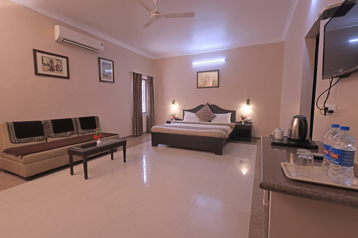 Watch the sun go down from this mansion in Udaipur. Situated on a gorgeous hilltop and surrounded by fruit trees, The Mewar Mansion is ideal for a big group getaway.